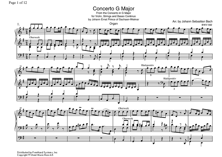 Digital Sheet Music for Concerto G Major BWV 592 by Johann Sebastian Bach, Johan Ernst von Sachsen-Weimar scored for Organ Solo; id:330759