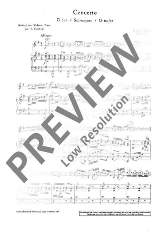 Digital Sheet Music for Concerto G Major - Piano Score and Solo Part by Johann Benda scored for Violin And String Orchestra; id:472431