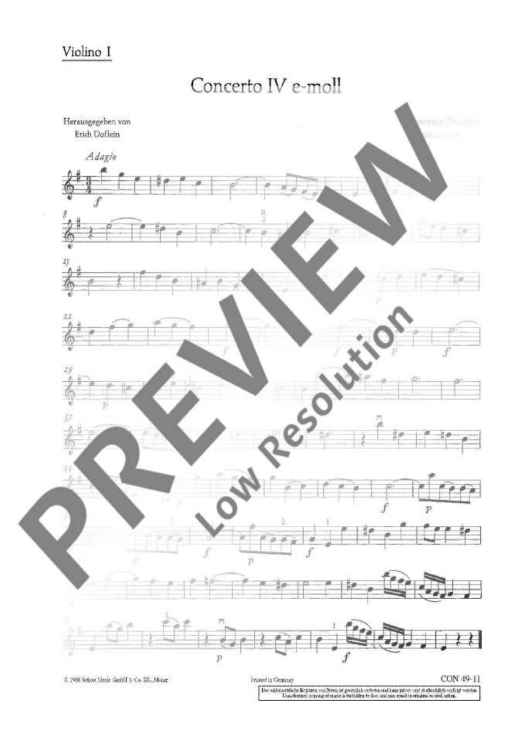 Die vierstimmigen Concerti des bedeutenden neapolitanischen Meisters Durante können von Streichorchestern mit oder ohne Generalbass aufgeführt werden, die Concerti f-Moll und e-Moll auch mit Streichquartett.