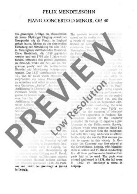 "Concerto No. 2 D minor - Full Score" Sheet Music by Felix Mendelssohn Bartholdy