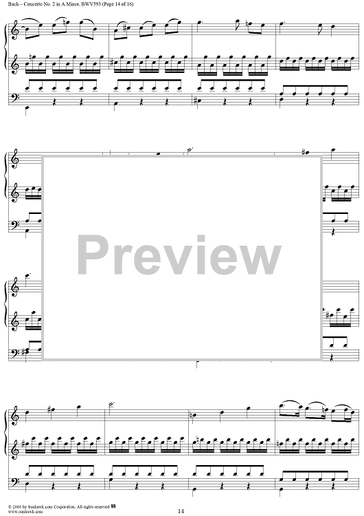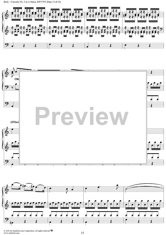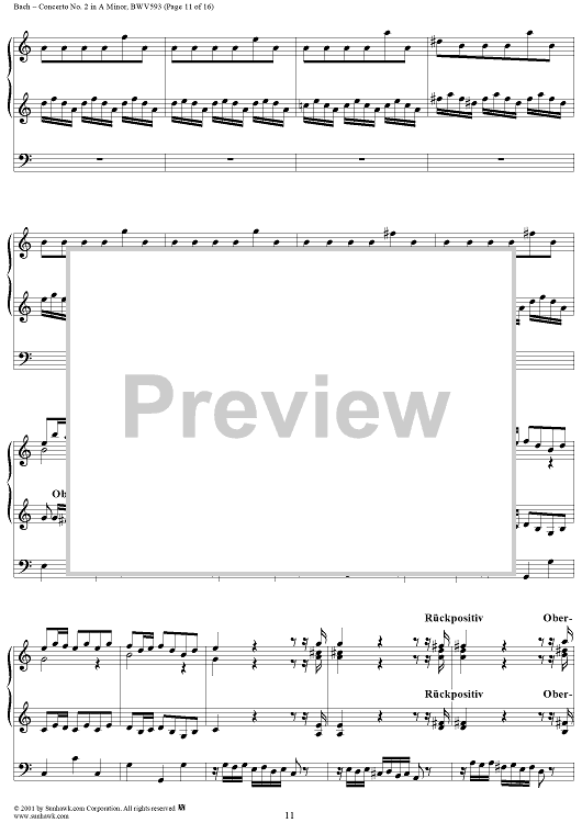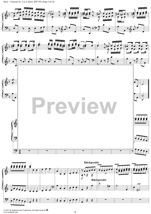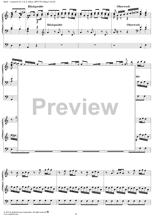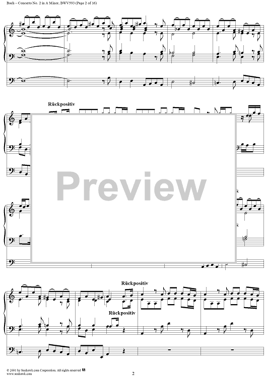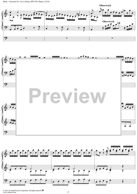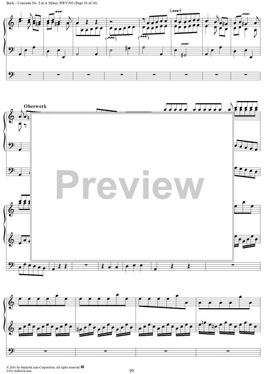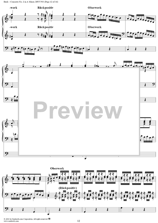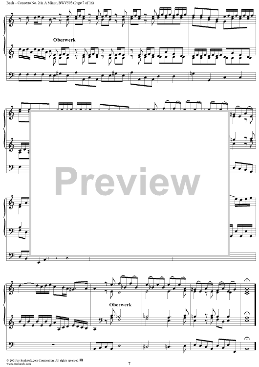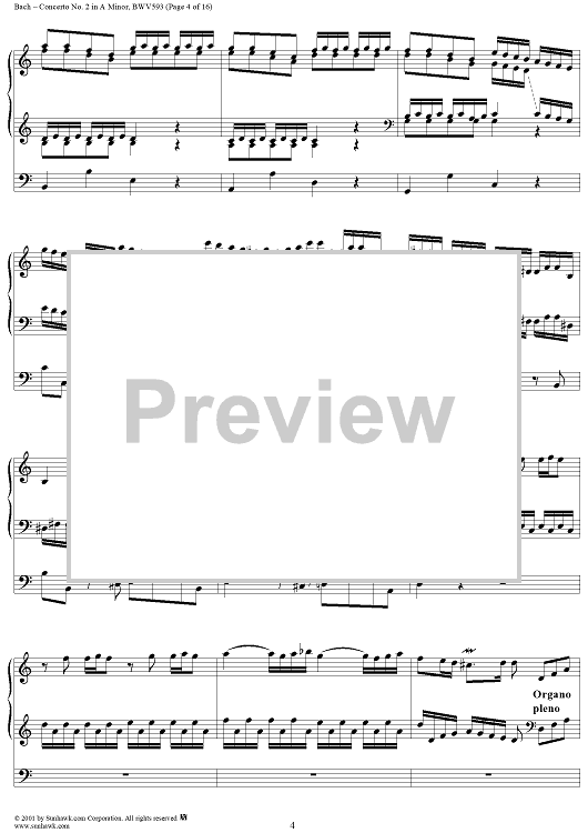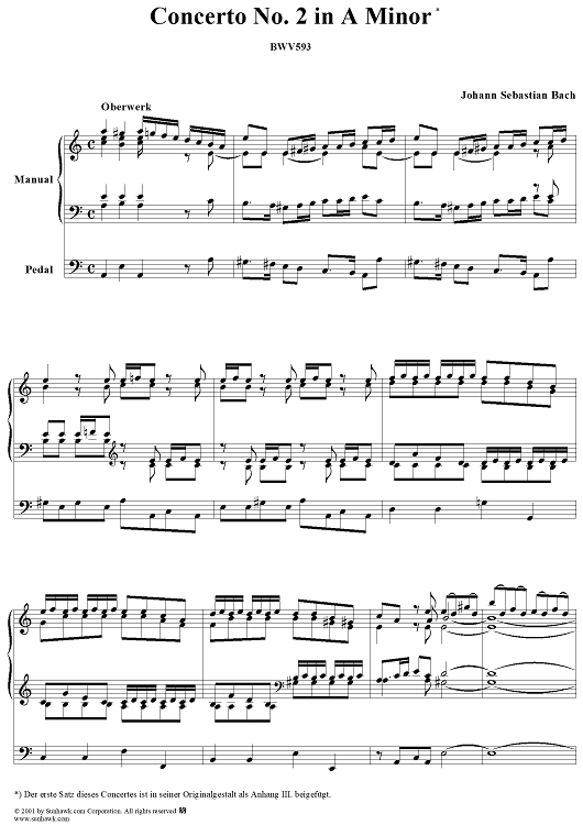 Digital Sheet Music for Concerto No. 2 in A Minor (BWV593) by Johann Sebastian Bach scored for Organ Solo; id:263091