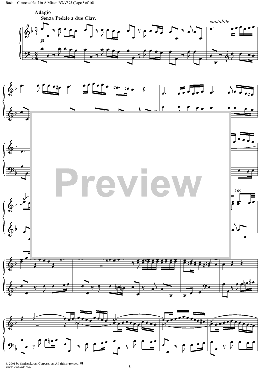 "Concerto No. 2 in A Minor (BWV593)" Sheet Music by Johann Sebastian Bach