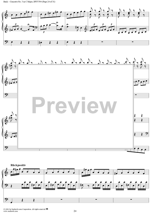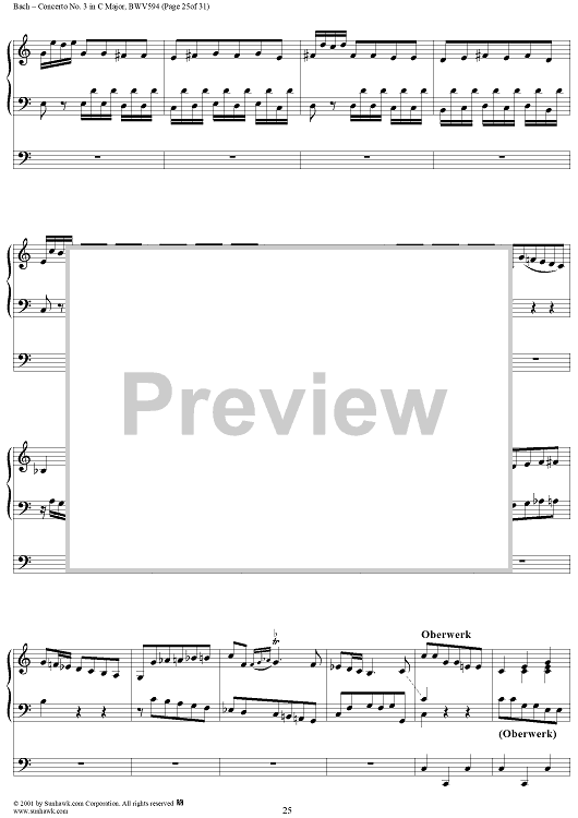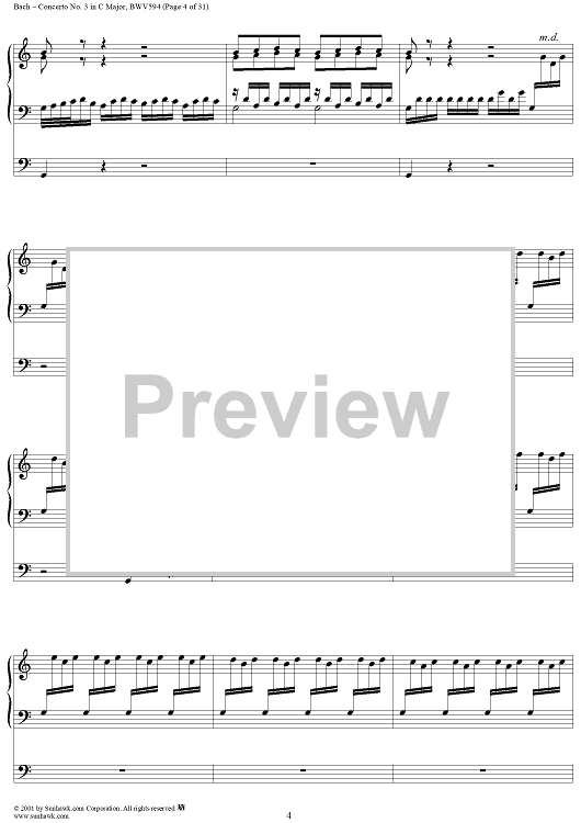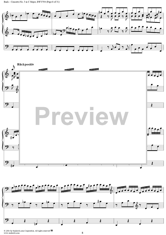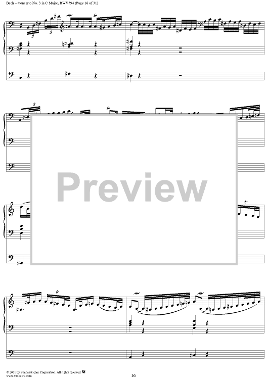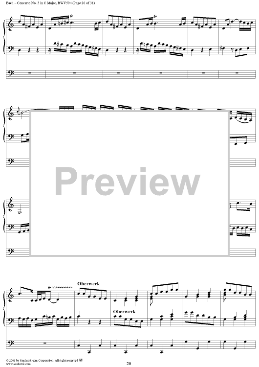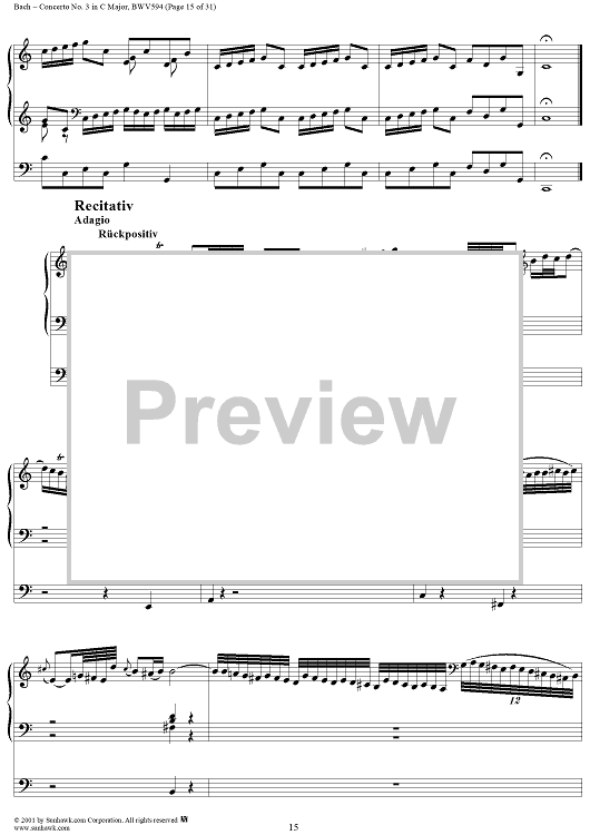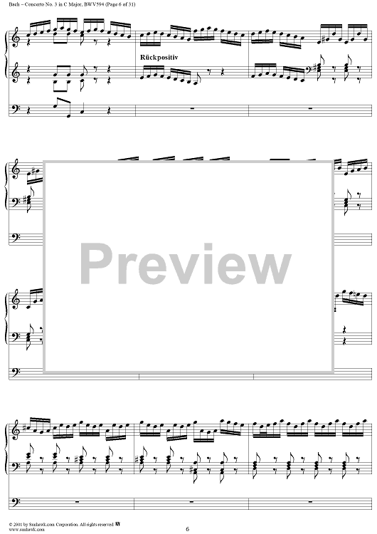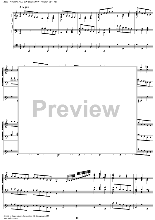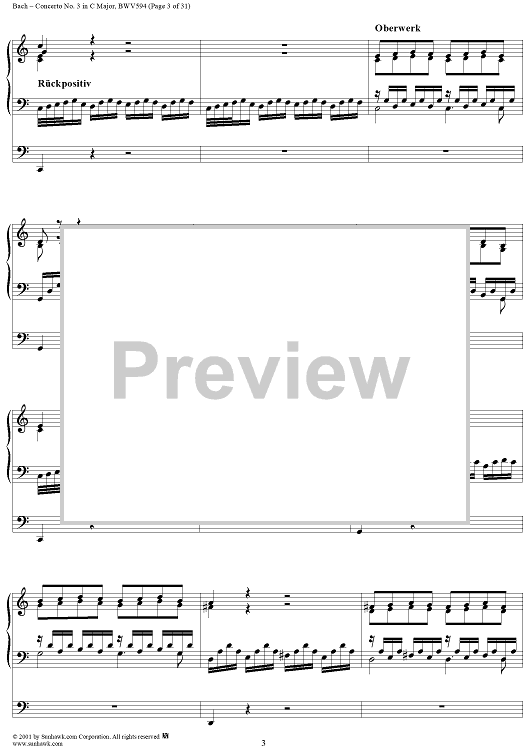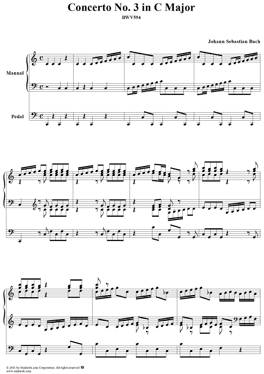 Digital Sheet Music for Concerto No. 3 in C Major (BWV594) by Johann Sebastian Bach scored for Organ Solo; id:258190