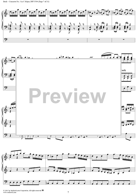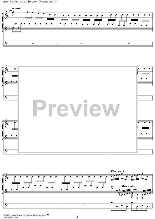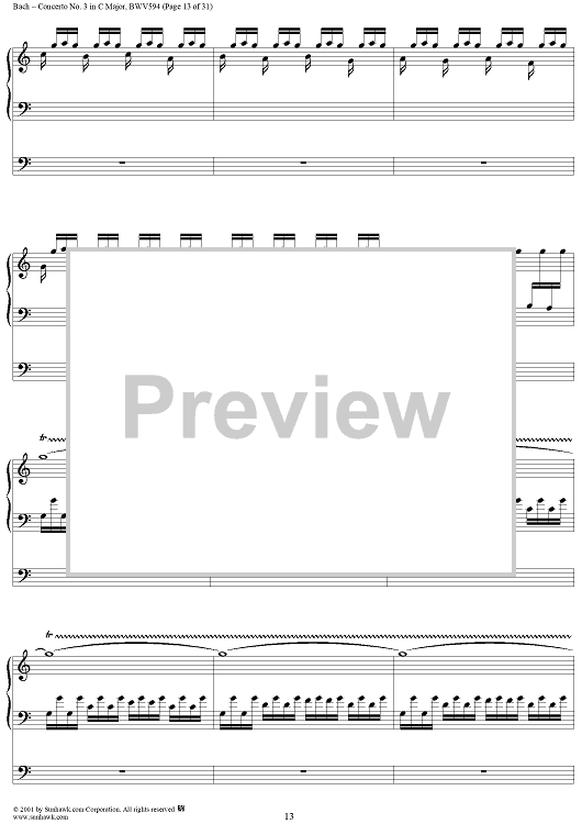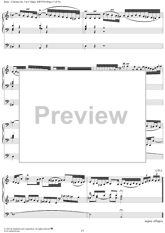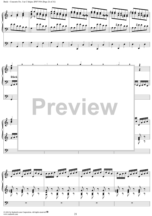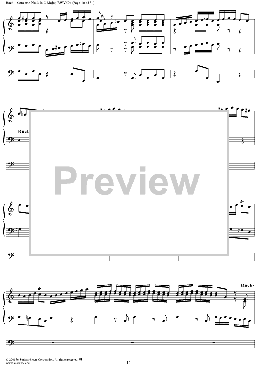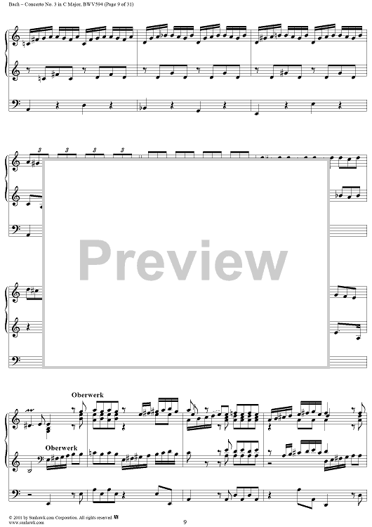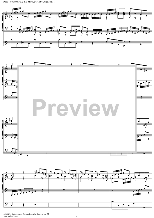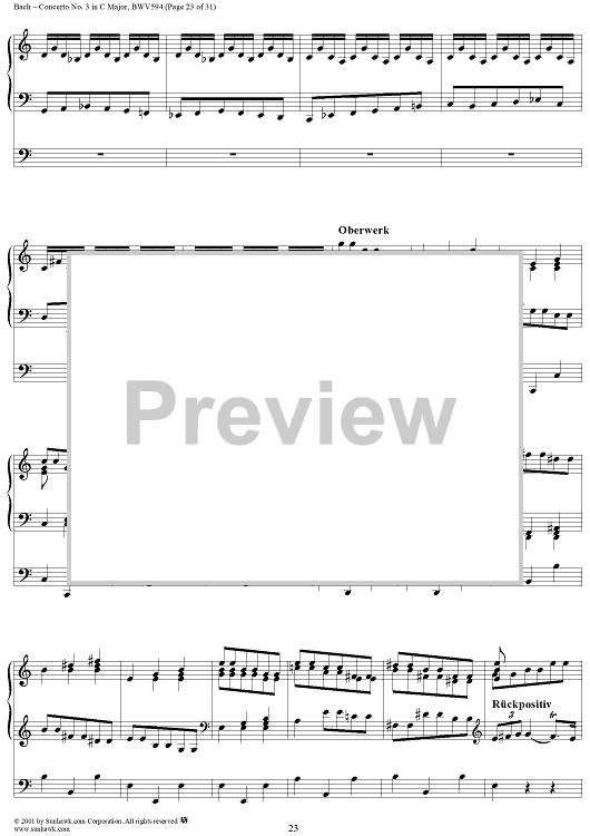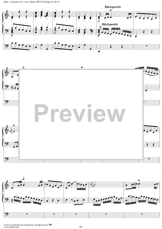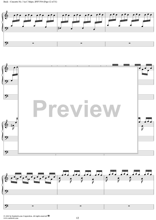 Digital Sheet Music for Concerto No. 3 in C Major (BWV594) by Johann Sebastian Bach scored for Organ Solo; id:258190