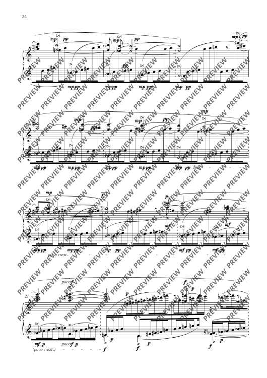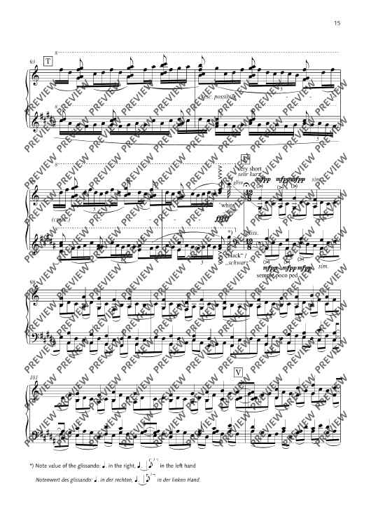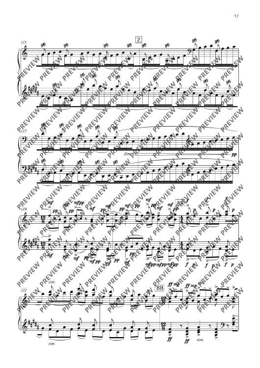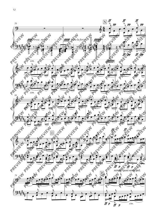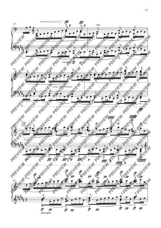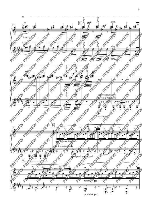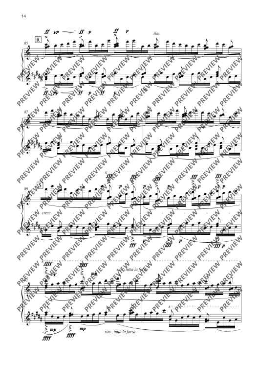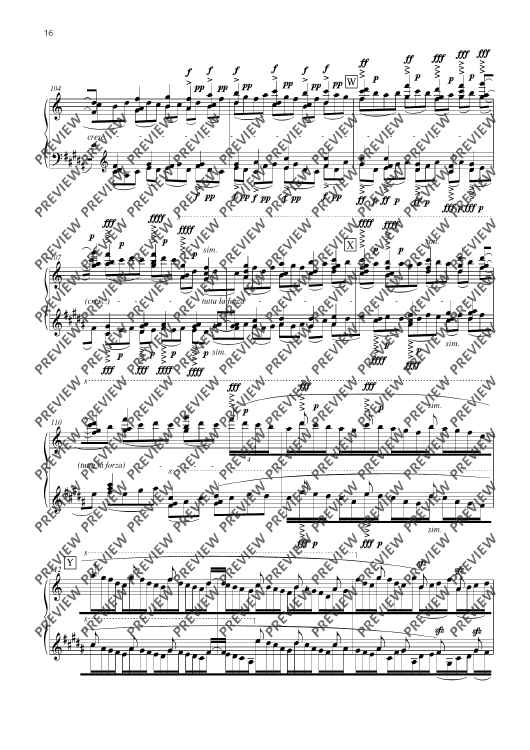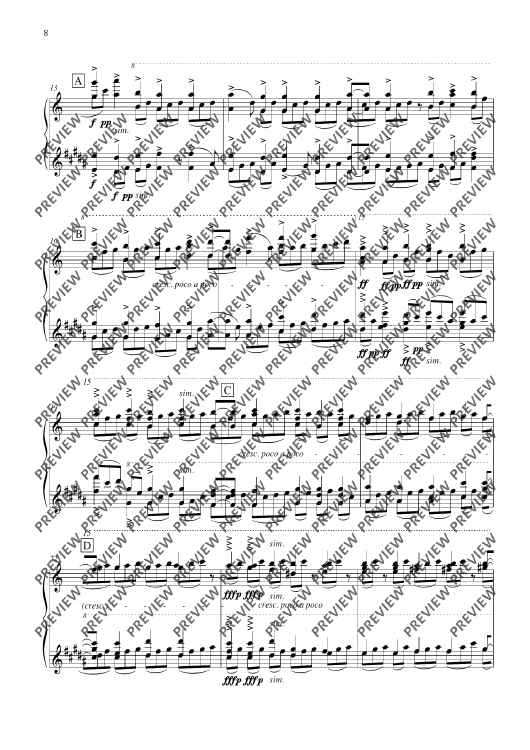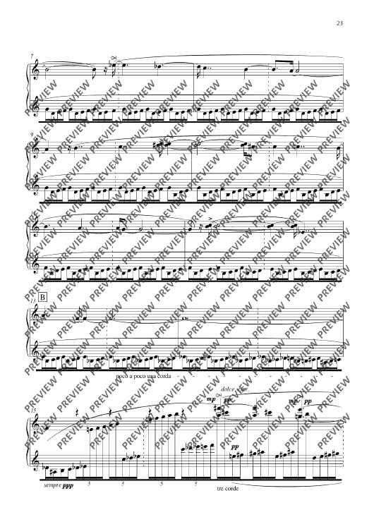 I composed the Piano Concerto in two stages: the first three movements during the years 1985-86, the next two in 1987, the final autograph of the last movement was ready by January, 1988. The concerto is dedicated to the American conductor Mario di Bonaventura. The markings of the movements are the following: 1. Vivace molto ritmico e preciso 2. Lento e deserto 3. Vivace cantabile 4. Allegro risoluto 5. Presto luminoso. The first performance of the three-movement Concerto was on October 23rd, 1986 in Graz. Mario di Bonaventura conducted while his brother, Anthony di Bonaventura, was the soloist. Two days later the performance was repeated in the Vienna Konzerthaus. After hearing the work twice, I came to the conclusion that the third movement is not an adequate finale; my feeling of form demanded continuation, a supplement. That led to the composing of the next two movements. The premiere of the whole cycle took place on February 29th, 1988, in the Vienna Konzerthaus with the same conductor and the same pianist. The orchestra consisted of the following: flute, oboe, clarinet, bassoon, horn, trumpet, tenor trombone, percussion and strings. The flautist also plays the piccoIo, the clarinetist, the alto ocarina. The percussion is made up of diverse instruments, which one musician-virtuoso can play. It is more practical, however, if two or three musicians share the instruments. Besides traditional instruments the percussion part calls also for two simple wind instruments: the swanee whistle and the harmonica. The string instrument parts (two violins, viola, cello and doubles bass) can be performed soloistic since they do not contain divisi. For balance, however, the ensemble playing is recommended, for example 6-8 first violins, 6-8 second, 4-6 violas, 4-6 cellos, 3-4 double basses. In the Piano Concerto I realized new concepts of harmony and rhythm. The first movement is entirely written in bimetry: simultaneously 12/8 and 4/4 (8/8). This relates to the known "triplet