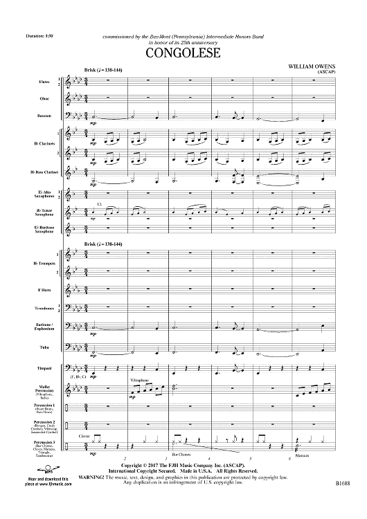 Embark on a beautiful and mysterious musical journey through the African Congo in this riveting new work! The lively allegro sections and the haunting andante section explore a wide spectrum of sounds and rhythms that will engage your students and delight your audiences. Spectacular! (3:30)