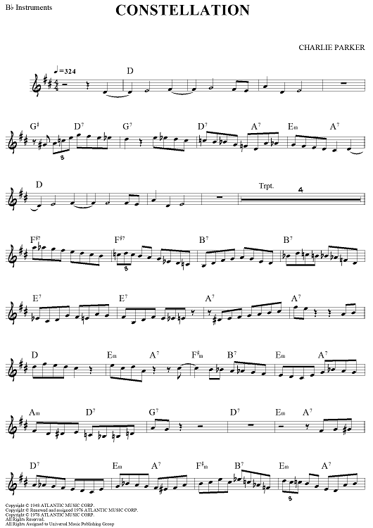 "Constellation - Bb Instruments" Sheet Music by Charlie Parker