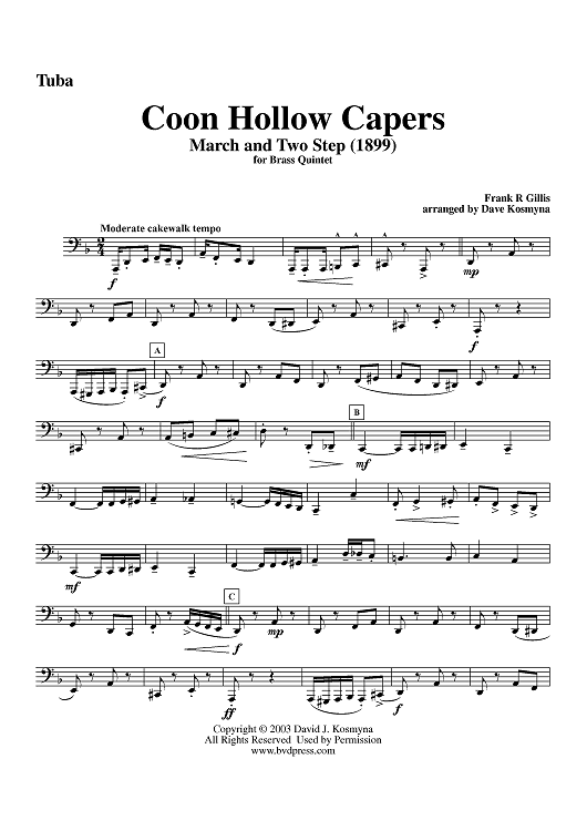 "Coon Hollow Capers - Tuba" Sheet Music by Frank R. Gillis