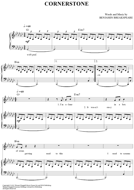 Digital Sheet Music for Cornerstone by Benjamin Breakspeare, Benjamin Clementine scored for Piano/Vocal/Chords; id:451827