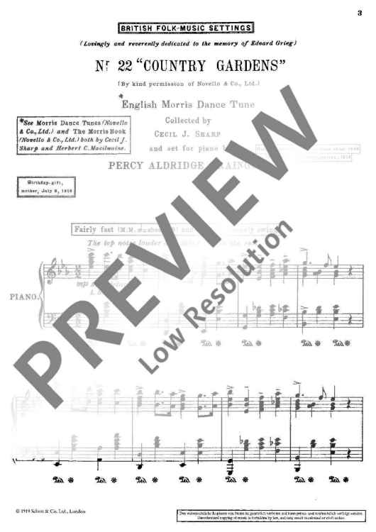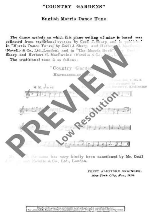 Digital Sheet Music for Country Gardens by George Percy Aldridge Grainger scored for Piano; id:474363