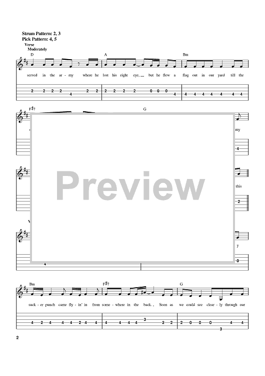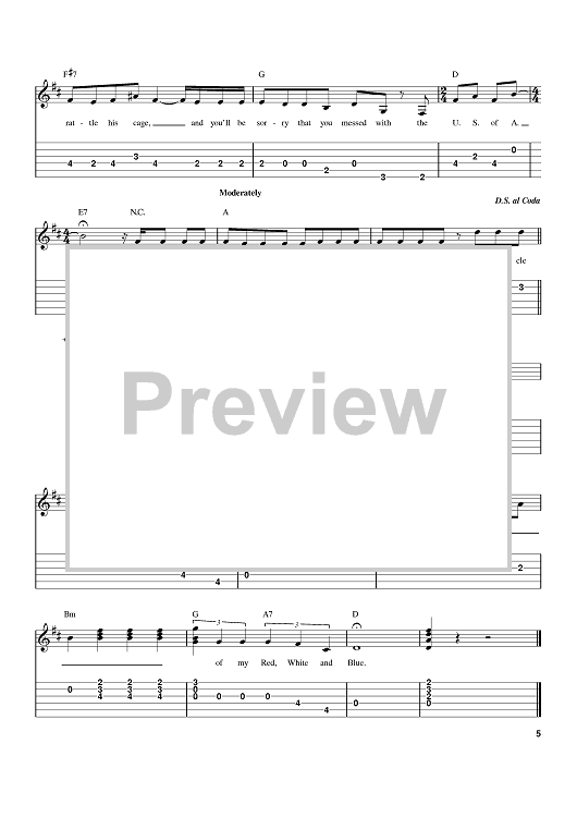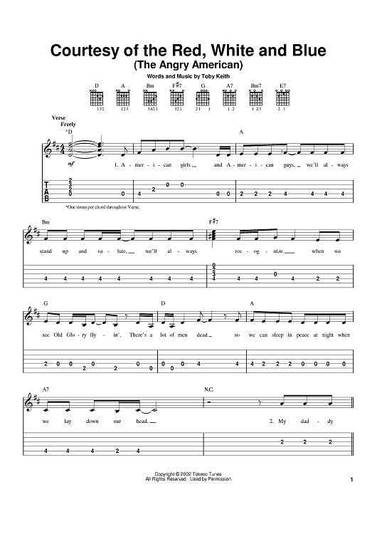 Digital Sheet Music for Courtesy Of The Red, White And Blue (The Angry American) by Toby Keith scored for Easy Guitar Tab; id:370792