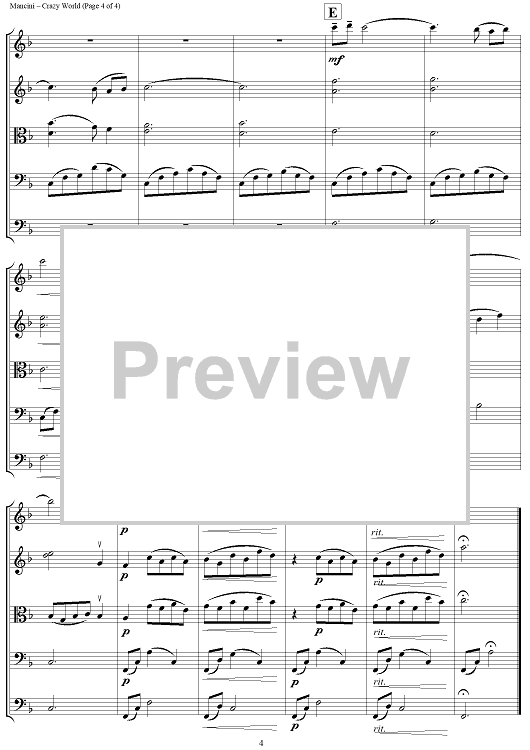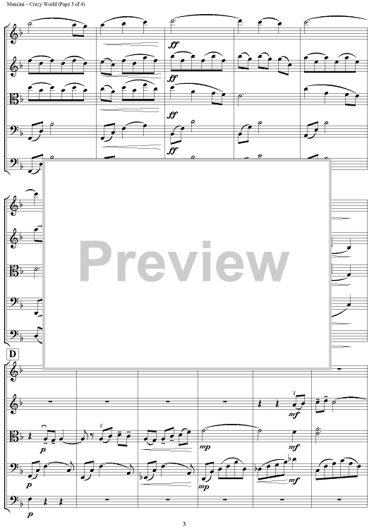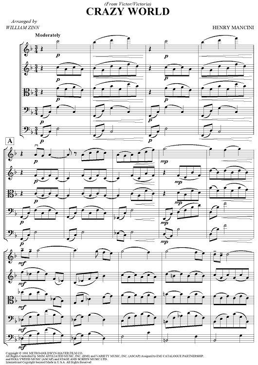 Digital Sheet Music for Crazy World - Score by Henry Mancini, William Zinn scored for String Ensemble; id:457997
