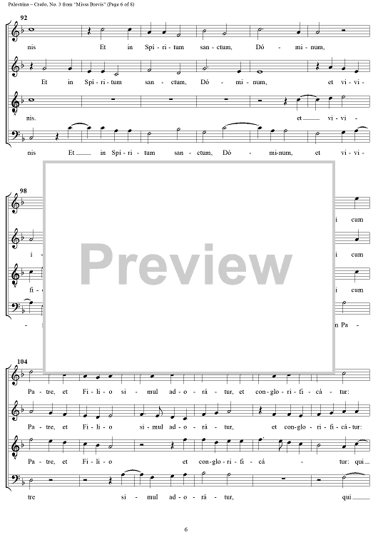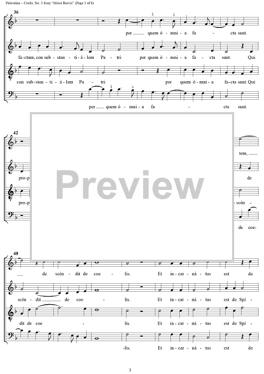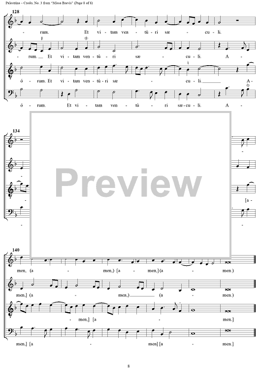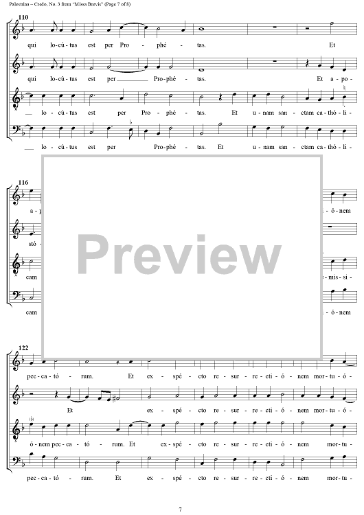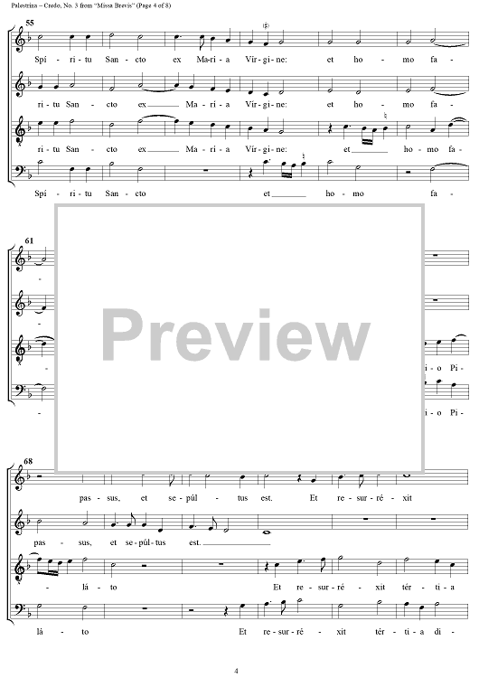 Digital Sheet Music for Credo - No. 3 from Missa Brevis by Giovanni Pierluigi da Palestrina scored for Four-part Mixed Chorus; id:254273