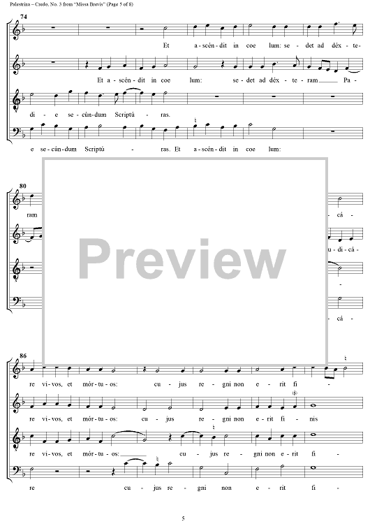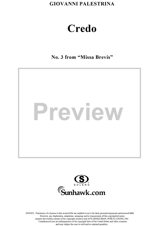 "Credo - No. 3 from Missa Brevis" Sheet Music by Giovanni Pierluigi da Palestrina