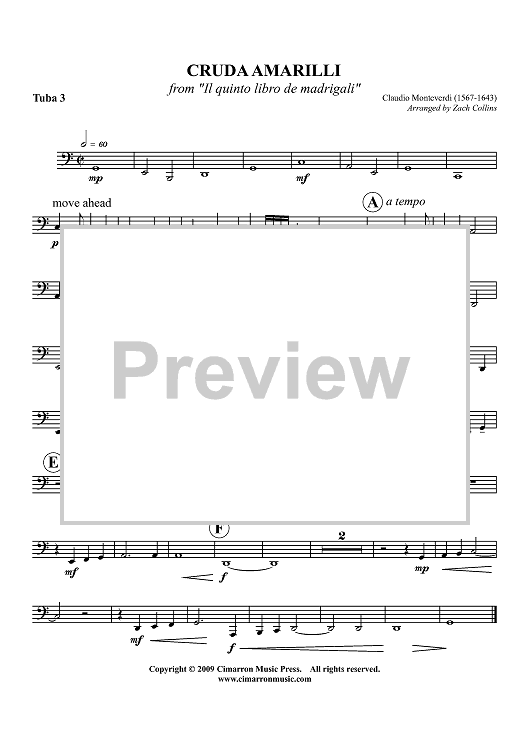 Digital Sheet Music for Cruda Amarilli - Tuba 3 by Claudio Monteverdi, Zach Collins scored for Tuba Ensemble; id:409958
