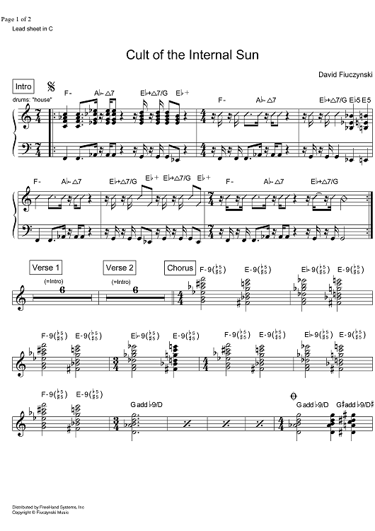 Digital Sheet Music for Cult of the Internal Sun by David Fiuczynski scored for Lead Sheet; id:330704