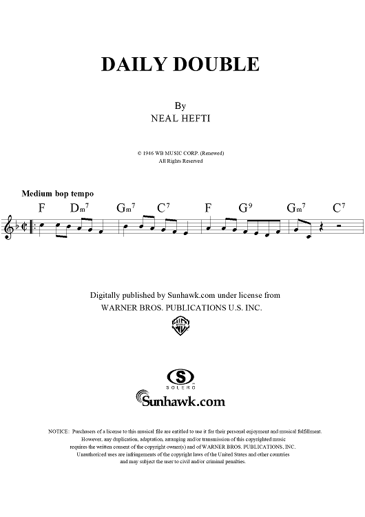 "Daily Double" Sheet Music by Neal Hefti