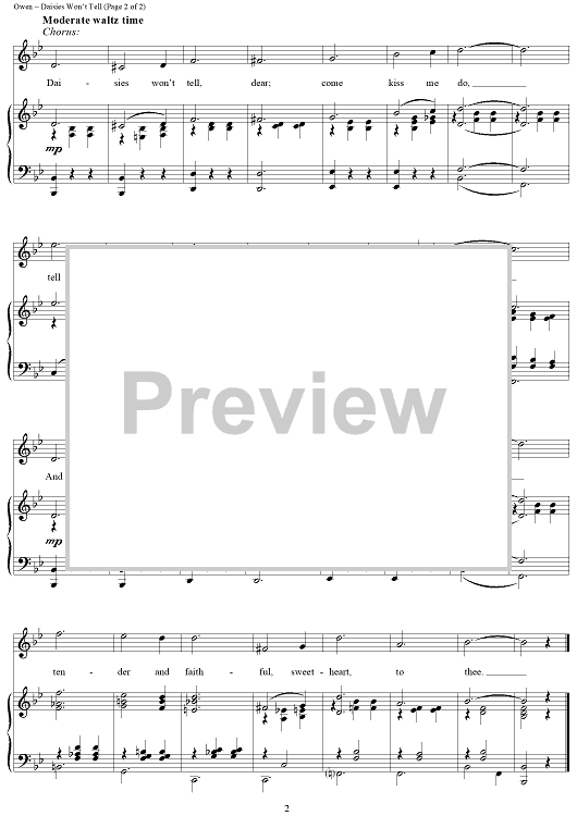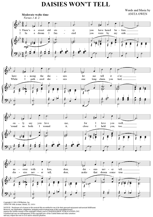 Digital Sheet Music for Daisies Won't Tell by Anita Owen scored for Piano/Vocal; id:254006