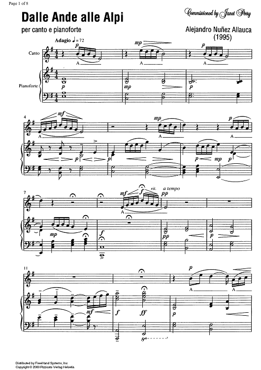 "Dalle Ande alle Alpi" Sheet Music by Alejandro Núñez Allauca