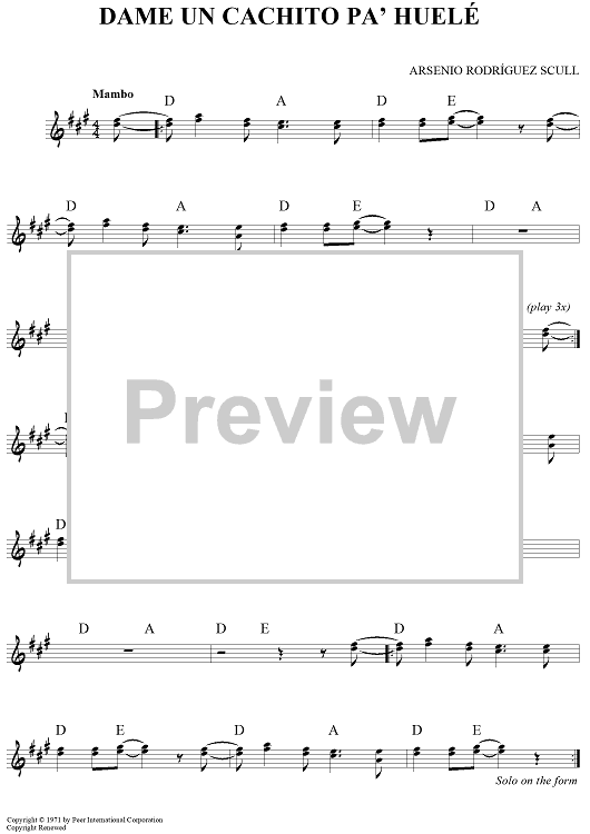 Digital Sheet Music for Dame Un Cachito Pa' Huelé by Arsenio Rodriguez Scull scored for Lead Sheet; id:446560