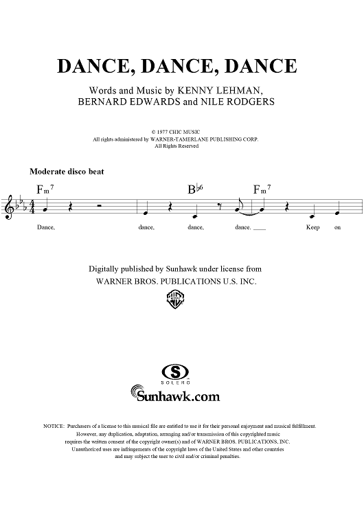 Digital Sheet Music for Dance, Dance, Dance (Yowsah, Yowsah, Yowsah) by Nile Rodgers, Bernard Edwards, Chic, Kenny Lehman scored for Lead Sheet; id:120361