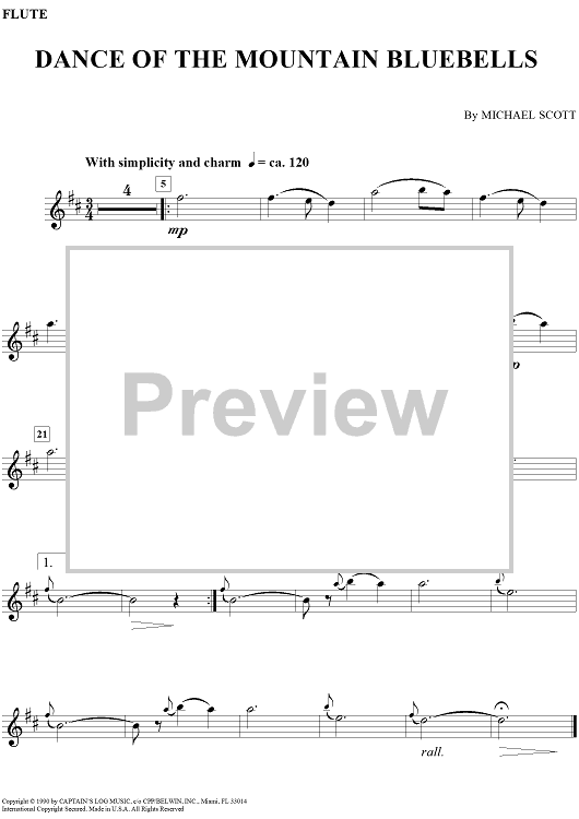 "Dance of the Mountain Bluebells - Flute" Sheet Music by Michael Scott