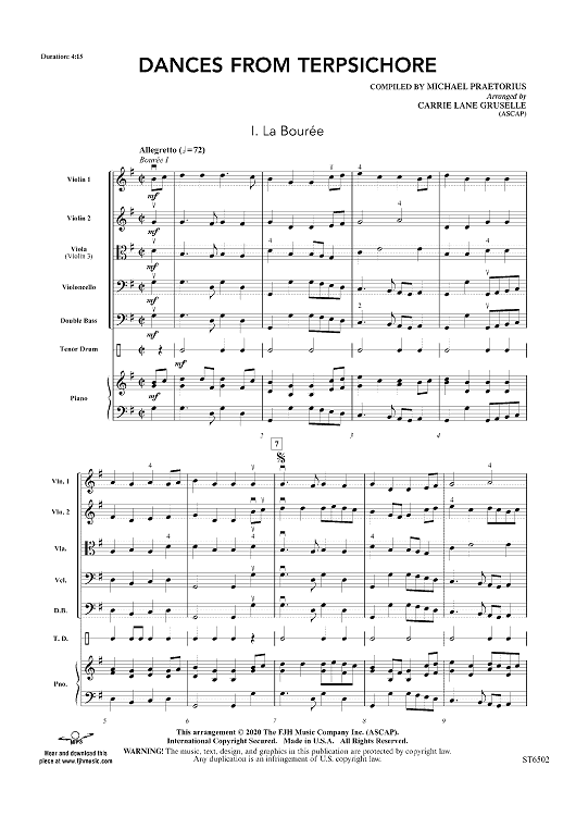 "Dances from Terpsichore - Score" Sheet Music by Michael Praetorius