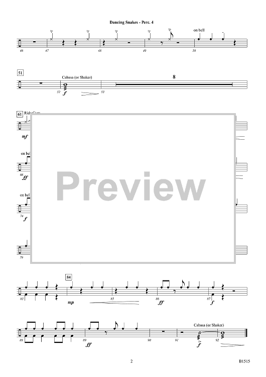 Digital Sheet Music for Dancing Snakes - Percussion 4 by Neil Simon scored for Concert Band; id:439867