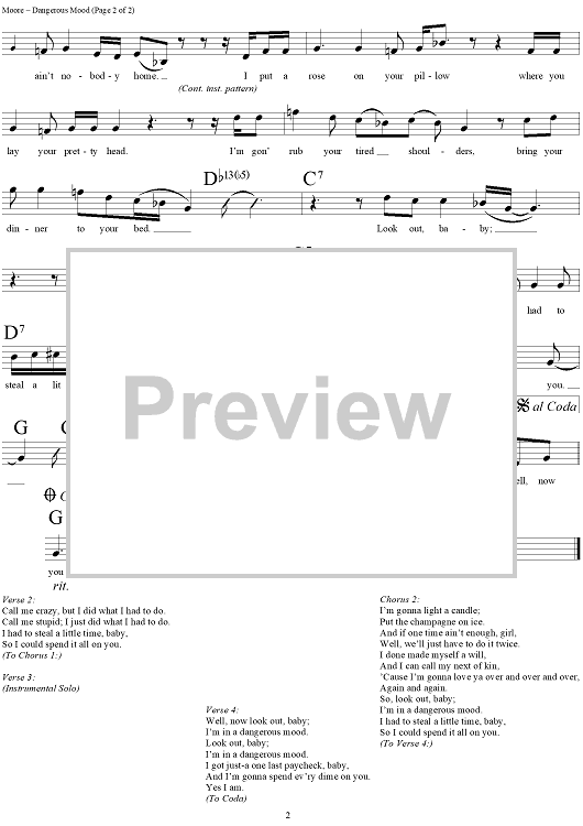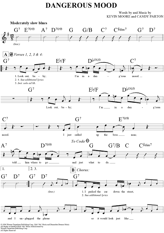 Digital Sheet Music for Dangerous Mood by Candy Parton, Kevin Moore scored for Lead Sheet; id:290887