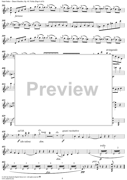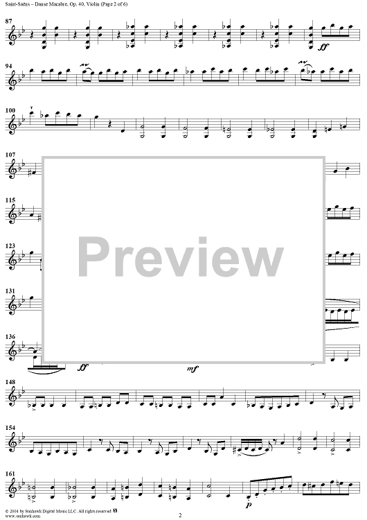 Digital Sheet Music for Danse Macabre, Op. 40 - Violin by Camille Saint-Saëns scored for Violin/Piano; id:303043