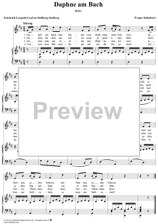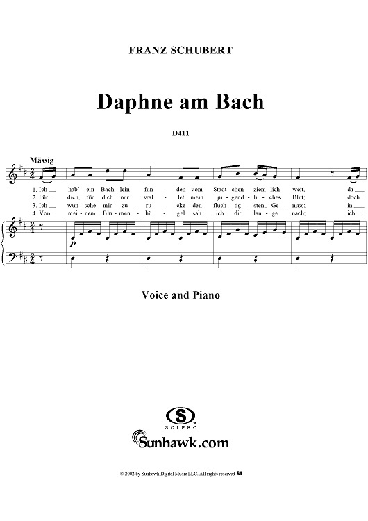 Digital Sheet Music for Daphne am Bach, D411 by Franz Schubert scored for Voice/Piano; id:256510