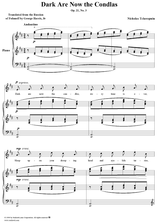 "Dark Are Now the Candles - Op. 21, No. 3" Sheet Music by Nicholas Tcherepnin
