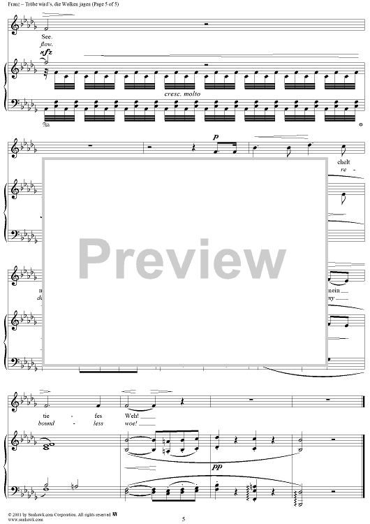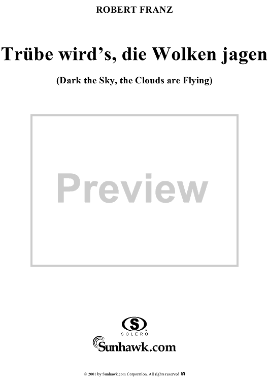 "Dark the Sky, the Clouds are Flying (Trübe wird's, die Wolken jagen)" Sheet Music by Robert Franz