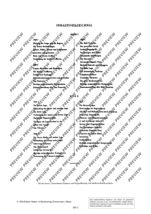 Die vierte, fünfte und sechste Lage Verbindung der ersten sechs Lagen Schwierige Tonarten Das Oktavenspiel Schwierige Stricharten Beiträge zeitgenössischer Komponisten Fortsetzung des Vibrato-Lehrganges Die sechsteilige Geigenschule in zwei Bänden von Josef Schloder (1904-1984) ist seit vielen Jahren ein Standardwerk zum Erlernen des Violinspiels ab 8 Jahren.
