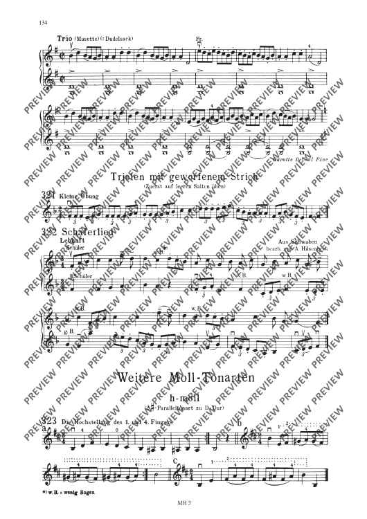 Die sechsteilige Geigenschule in zwei Bänden von Josef Schloder ist seit vielen Jahren ein Standardwerk zum Erlemen des Violinspiels ab 8 Jahren. Schloder nahm 1973 noch einmal eine Überarbeitung nach den damals neuesten Erkenntnissen der Pädagogik vor. Zugleich erarbeitete er einen Kurzlehrgang für besonders begabte oder ältere Anfänger - eine zu der Zeit völlig neue Idee. Die Schule beginnt mit ersten Strichübungen und Griffarten auf den einzelnen Saiten, gefolgt von Tonleiterübungen und klei¬ nen Stücken. Mit Originalwerken aus der Weltliteratur werden neue Lerninhalte eingeführt.