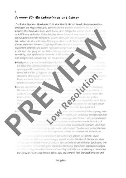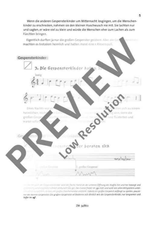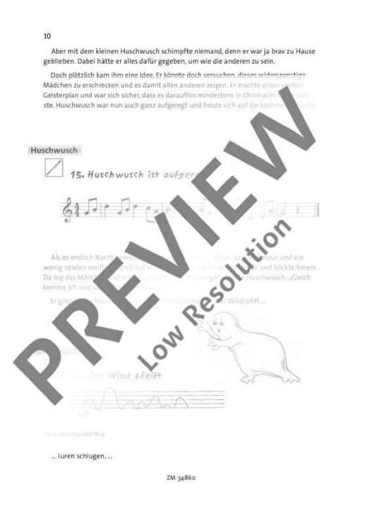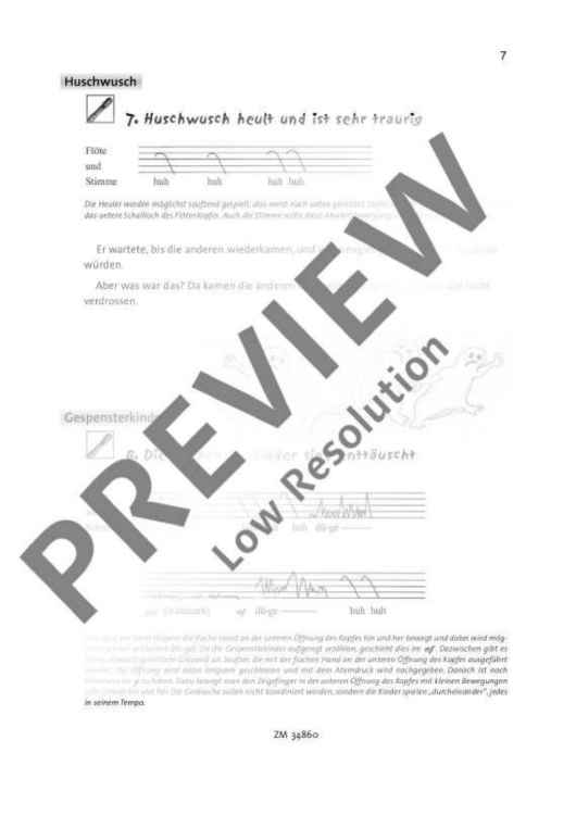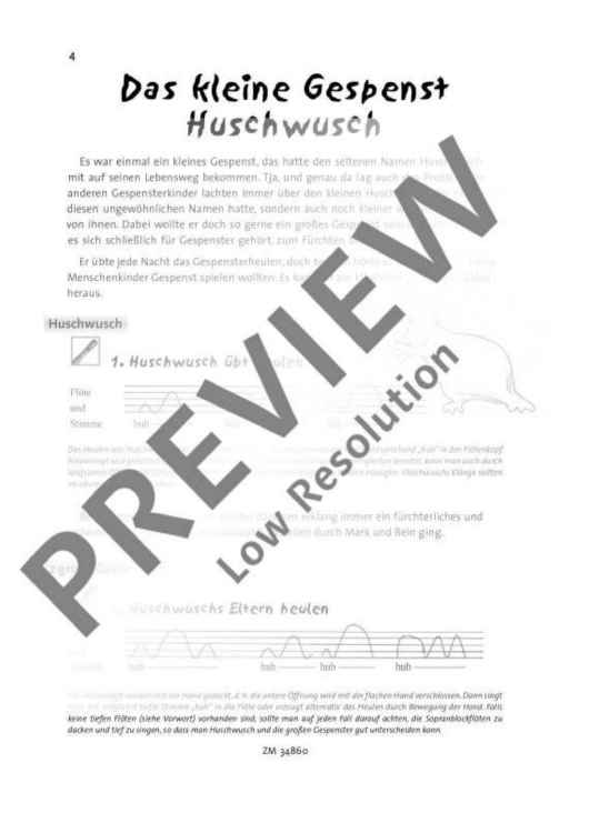 Huschwusch hat ein großes Problem, denn er kann das, was sonst jedes Gespenst kann, leider nicht, nämlich das Gespensterheulen. Damit zieht er sich den Spott der anderen Gespensterkinder zu. Bis er Mira trifft, die sich vor den Gespensterkindern gar nicht fürchtet und Huschwusch hilft, etwas zu finden, mit dem er die anderen beeindrucken kann. Geeignet für Kinder ab ca. 6 Jahren, verbindet dieses Heft den Blockflötenunterricht mit spielerischen Elementen, in denen moderne Techniken fantasievoll eingesetzt werden, um Stimmungen auszudrücken. Erzähltext, Musikstücke, Lieder und Geräusche werden zu einer Geschichte verknüpft, die sich hervorragend im Gruppenunterricht einstudieren lässt und als szenische Aufführung (am besten mit den entsprechenden Kostümen) bestimmt der Höhepunkt eines Musikschulabends wird. Allen Blockflöten-Lehrern und -Lehrerinnen wärmstens zu empfehlen!