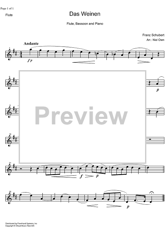 Digital Sheet Music for Das Weinen Op.106 No. 2 D926 - Flute by Franz Schubert, Niel Own scored for Flute/Bassoon/Piano; id:324633