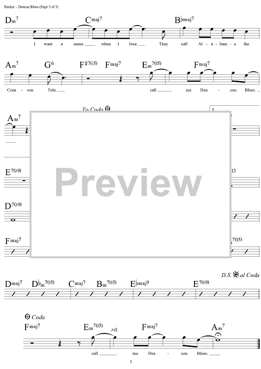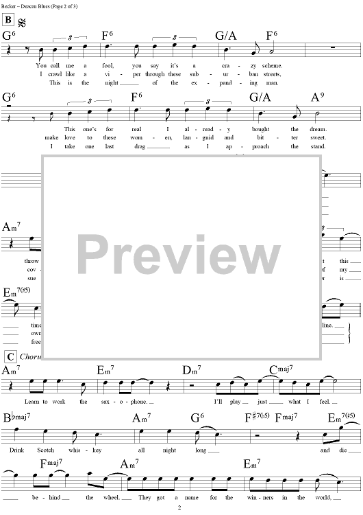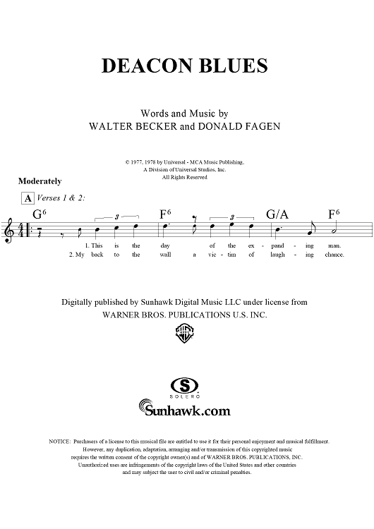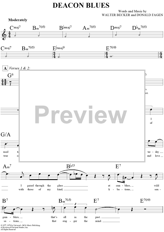 Digital Sheet Music for Deacon Blues by Steely Dan, Donald Fagen, Walter Becker scored for Lead Sheet; id:293886