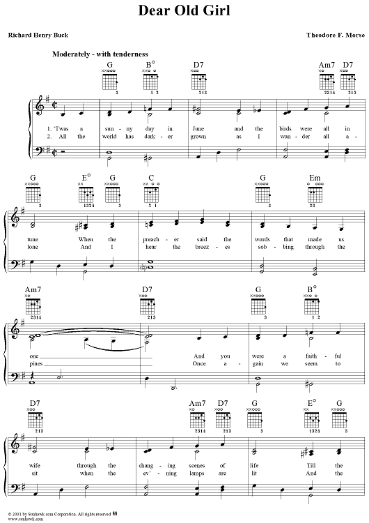 Digital Sheet Music for Dear Old Girl by Theodore F. Morse, Richard Henry Buck scored for Piano/Vocal; id:252857