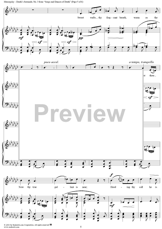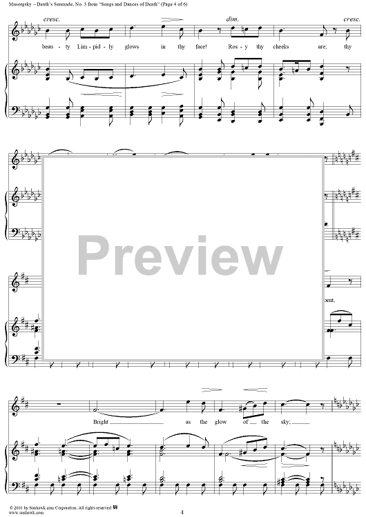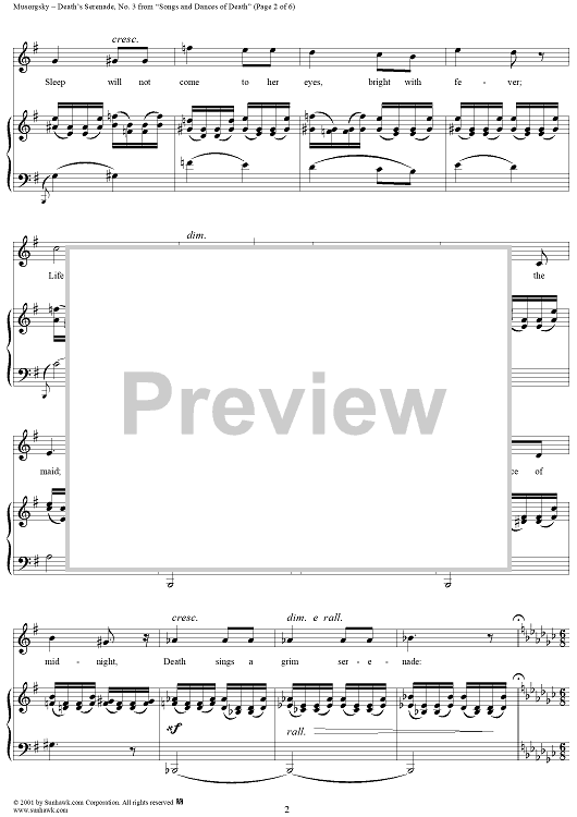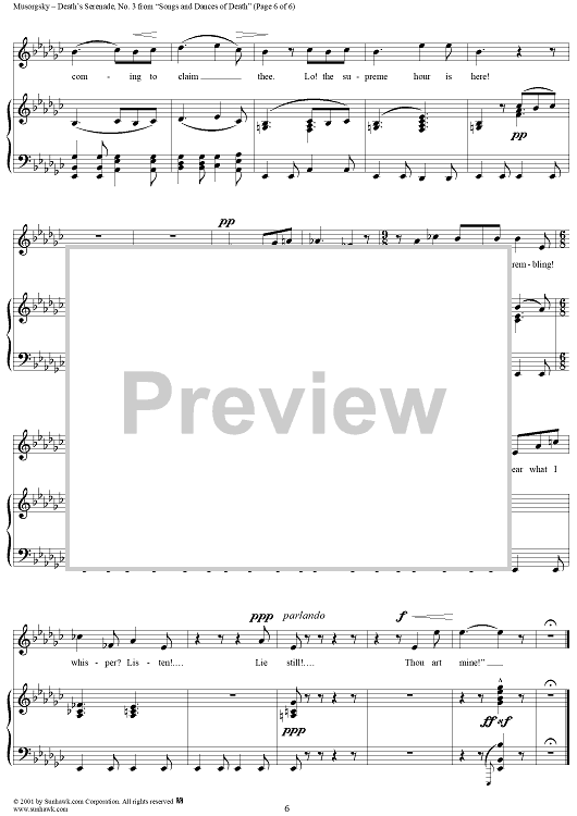 Digital Sheet Music for Death's Serenade by Modest Musorgsky scored for Voice/Piano; id:262892