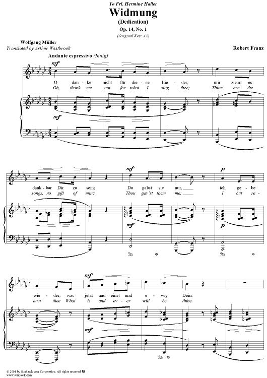 Digital Sheet Music for Dedication (Widmung) by Robert Franz, Wolfgang Muller scored for Voice/Piano; id:269557