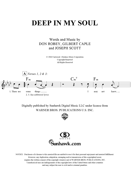 Digital Sheet Music for Deep in My Soul by Don Robey, Gilbert Caple, Joseph Scott scored for Lead Sheet; id:290894