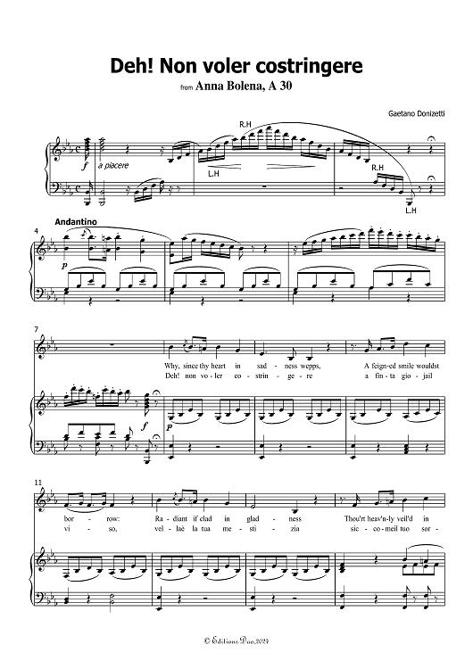"Deh! Non voler costringere - from Anna Bollena, A 30" Sheet Music by Gaetano Donizetti