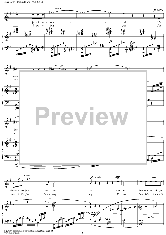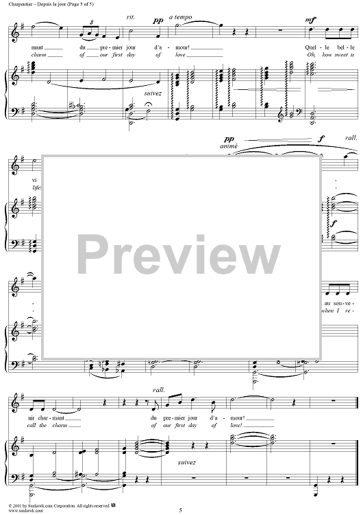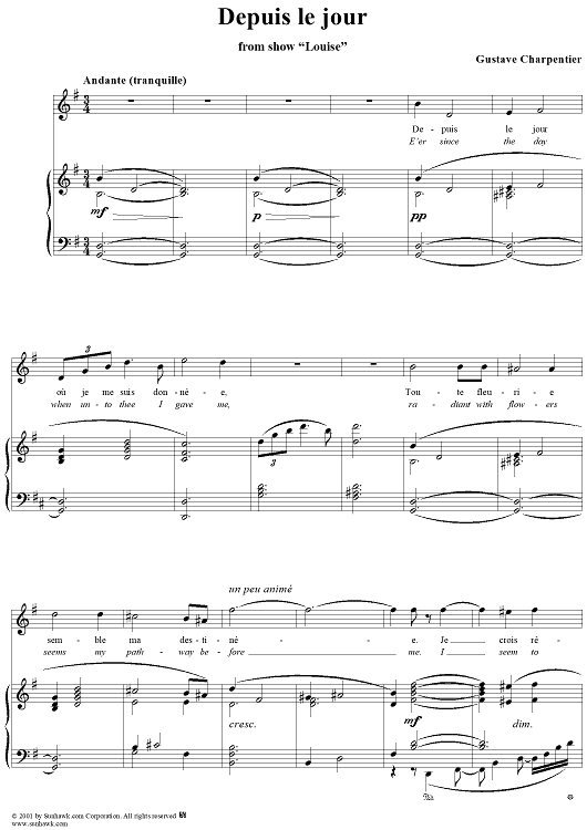 Digital Sheet Music for Depuis le jour by Gustave Charpentier scored for Voice/Piano; id:189580
