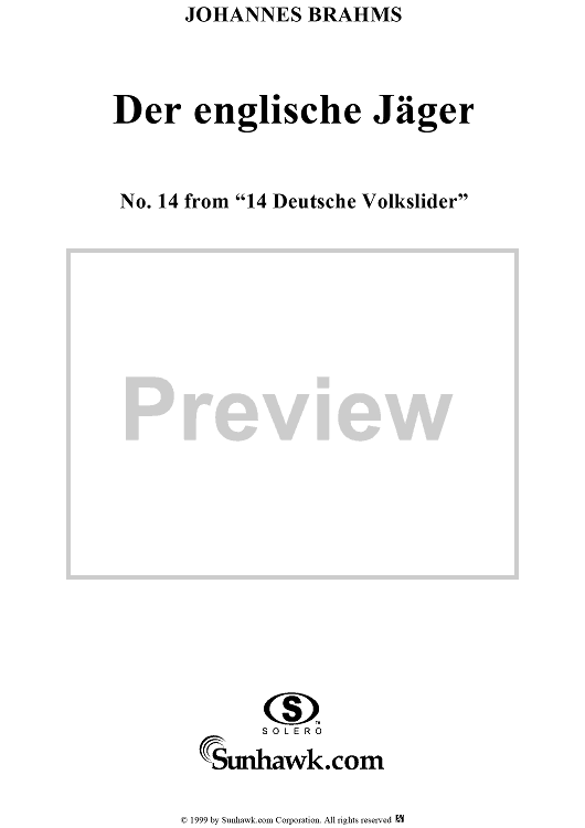 "Der englische Jäger - No. 14 from "14 Deutsche Volkslieder" Book 2, WoO 34" Sheet Music by Johannes Brahms