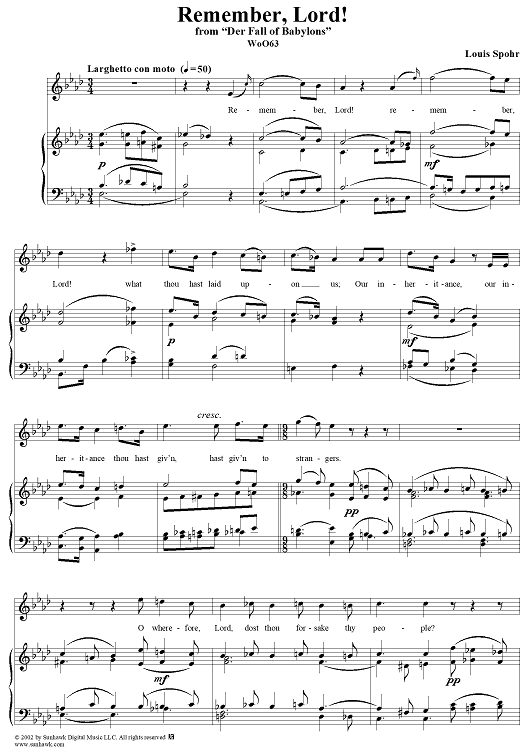 "Der Fall of Babylons, WoO63, Part 1, No. 3 - Gedenke, Herr (Remember, Lord) aria" Sheet Music by Louis Ludwig Spohr