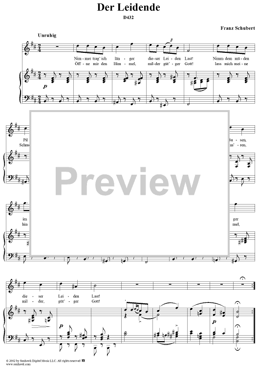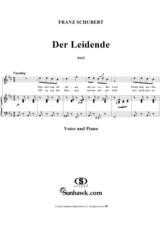Digital Sheet Music for Der Leidende, D432 by Franz Schubert scored for Voice/Piano; id:256715