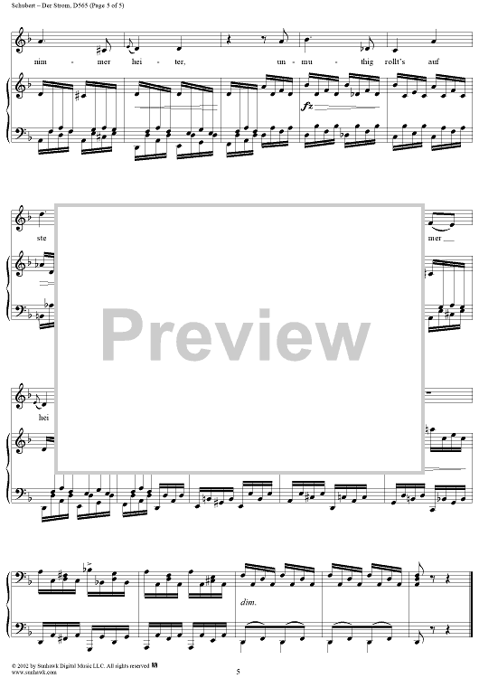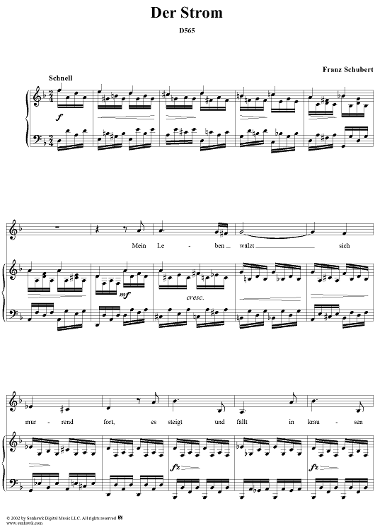 Digital Sheet Music for Der Strom, D565 by Franz Schubert scored for Voice/Piano; id:256627