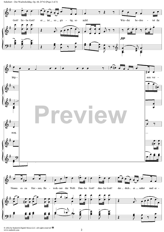 Digital Sheet Music for Der Wachtelschlag, Op.68, D742 by Franz Schubert scored for Voice/Piano; id:256667