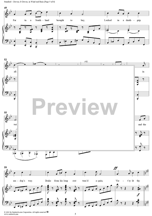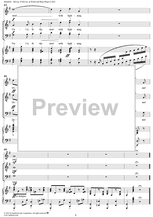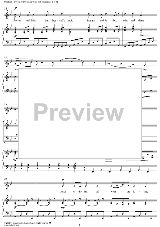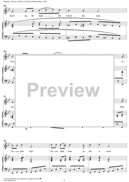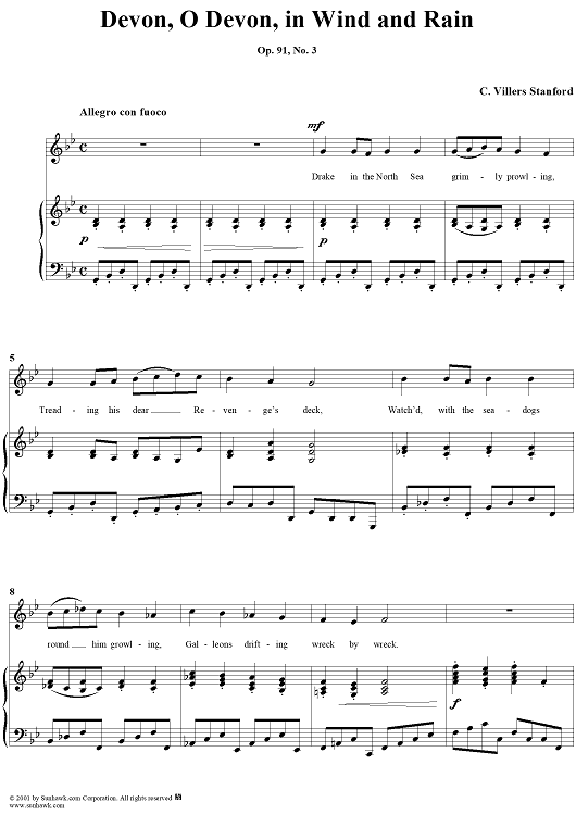 Digital Sheet Music for Devon, O Devon, in Wind and Rain, Op. 91, No. 3 by Charles Villiers Stanford scored for Voice/Piano; id:272008